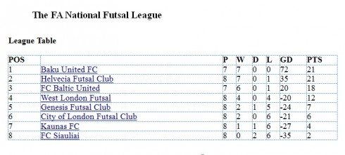 Anglijos aukščiausios salės futbolo lygos lentelę rasite žemiau, prie nuotraukų.