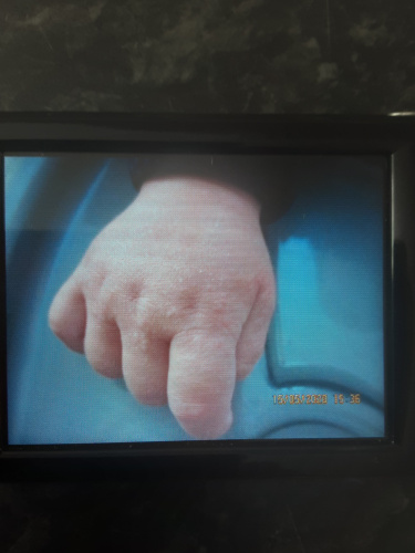 Vaikas tą naktį jis išmiegojo ramiai nors ir buvo su aukšta temperatūra. Kitą dieną ant vaiko rankų atsirado neaiškūs spuogai. Tačiau tai tikrai buvo ne niežai ar kažkas panašaus į kitokias tokiais simptomai pasireiškiančias ligas. Spuogai buvo gumbelių formos, mažyčiai, tačiau jų buvo labai daug. Atrodė, kad spuogeliai prisipildė skysčiu jų viduje, tačiau jų buvo neįmanoma išspausti.