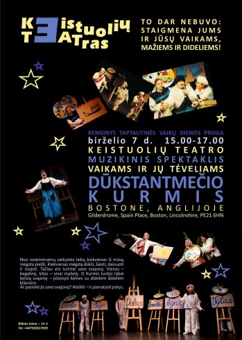 Renginys ir "Keistuolių teatro" spektaklis vyks Bostone adresu: Spain Place, Boston, PE 21 6HN, Gliderdrome salėje, nuo 15.00 val.