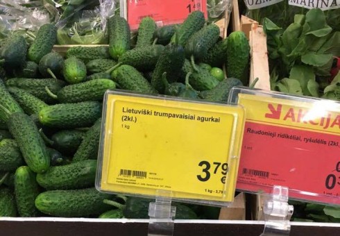 Anglija.lt portalui atsiųstoje nuotraukoje galime matyti, jog kilogramas lietuviškų agurkų vienoje iš Lietuvoje esančių parduotuvių šiandien kainuoja 3.79 EUR. Kaip pastebi Anglijos lietuviai, agurkų kaina šioje šalyje – daug mažesnė. Lyginant nevienodas abiejų šalių gyventojų pajamas – kainų skirtumas dar didesnis.