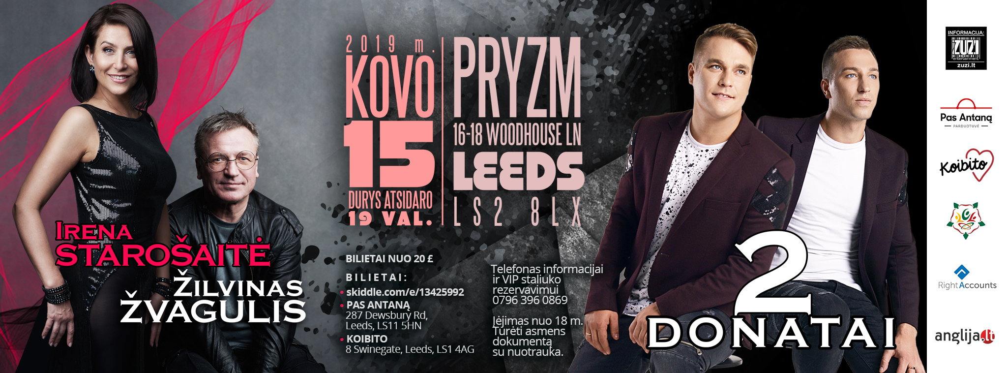 Irena ir Žilvinas Anglijos mieste Leeds, klube „Pryzm“ kaip tik užbaigs savo jubiliejinio, 25-erių metų scenoje kartu, koncertinio turo maratoną, na, o „2 Donatai“ čia pat skelbs pradedantys savo jubiliejinius koncertus.