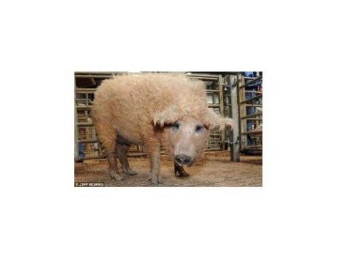 Susipažinkite su kiaulaite, kuri vėsiomis naktimis tikrai nesušals, kadangi ją gaubia šiltas smulkių garbanų kailiukas. Tai Elizabeth, viena iš kelių retos austrų Mangalitza Glit veislės atstovių.