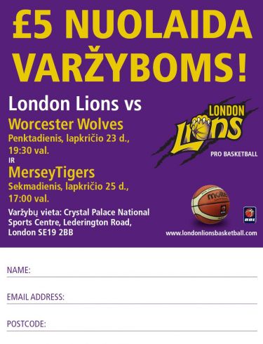 Anglija.lt kartu su Britanijos aukščiausios krepšinio lygos (BBL) komanda "London Lions" siūlo ypatingą nuolaidą krepšinio mėgėjams.