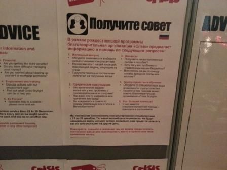 Per pirmąją dieną į centrą atėjo apie 100 pagalbos ieškančių, gyvenamosios vietos neturinčių asmenų. Tarp susirinkusiųjų buvo lietuvių, lenkų, italų, keli albanai, gatvės muzikantas suomis. „Centre kalbėjo, kad per paskutinius dvejus metus benamių iš Rytų Europos skaičius išsaugo, ir šiuo metu sudaro apie 40 proc. visų Londono benamių“, – sakė Valerijus. Tam, kad pakliūtų į „Crisis“ Kalėdų laikotarpiui, benamiai turėjo būti registruoti dienos centruose, kurie yra visame Londone. Kai kurie „Crisis“ centrai suteikė nakvynę, kiti – prieglobstį ir reikalingą pagalbą dienos metu.
