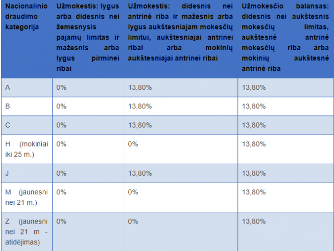 1A klasės draudimo tarifai 2018-2019 m. 13,80l%