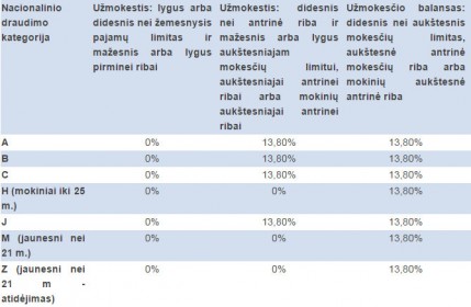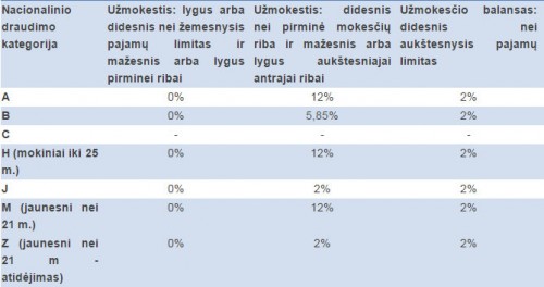 Nacionalinio draudimo klasė: 2017-2018 m. tarifai