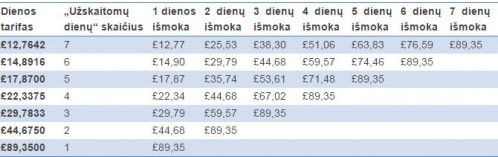 Jei įmonė darbuotojams suteikia galimybę naudotis tarnybiniu automobiliu, įkainius už mylias galima apskaičiuoti pasitelkiant šiuos tarifus. Žiūrėti paveikslėlį nr. 6.