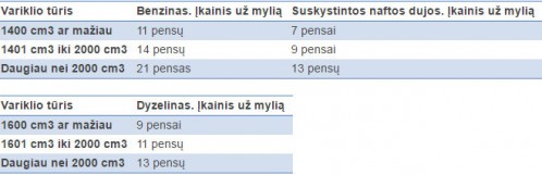 Įmonės automobilis: Patariamieji tarifai už kurą