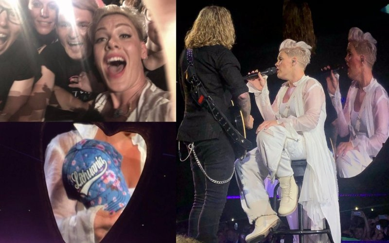 Pakėlusi kepurę atlikėja susirinkusiems papasakojo istoriją apie savo kilmę. Atlikėjos močiutė yra kilusi iš Lietuvos. Tai reiškia, kad jos gyslomis taip pat teka lietuviškas kraujas. Po to PINK paklausė, kiek arenoje susirinko lietuvaičių. Visa arena pradėjo ūžti, šaukti. Akivaizdu, jog lietuvių gerbėjų susirinko nemažai.