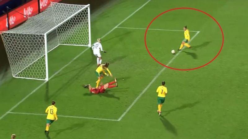 Tai nutiko 29-ąją minutę, kuomet Lietuvos rinktinė atsiliko dar tik 0:1. Belgijos rinktinės išpuolio metu po perdavimo skersai baudos aikštelę Algimantė Mikutaitė priėmė žaidimo įrankį niekieno netrukdoma, tačiau vietoje to, kad jį susistabdytų ar nukreiptų už galinės linijos, paleido kamuolį į savo vartus.