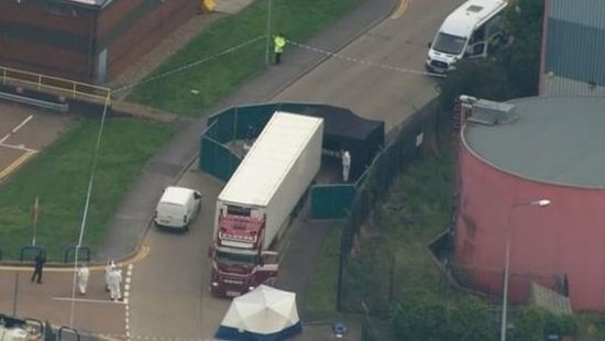 Didžiosios Britanijos Essexo grafystėje viename sunkvežimio konteineryje buvo aptikti 39 žmonių kūnai.