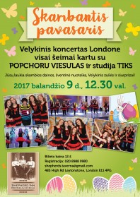 Artėja gražiausia pavasario šventė – Velykos! Popchoras „Viesulas“ atveža į Londoną puikią pavasarinę nuotaiką, skambias lietuviškas dainas ir daugybę siurprizų! Visa tai – koncerte „Skambantis pavasaris“.