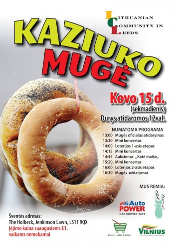 Ketvirtus metus skaičiuojanti Leedso lietuvių bendruomenė (LCL) kovo 15 d. tautiečius bei visus geros valios žmones vėl kviečia apsilankyti Kaziuko mugėje. Leedse ji organizuojama dar tik antrą kartą, tačiau šventės programa, lyginant su pirmaisiais metais, jau gerokai praturtėjo.