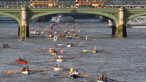 Atvykite į centrinį Londoną ir stebėkite žymiąsias irkluotojų lenktynes, kurios vyks Temzės upėje.