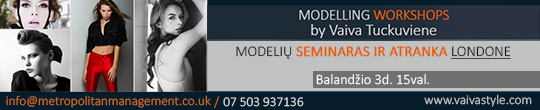 Š.m. balandžio 3 d. žinoma modelių agentė Vaiva Tučkuvienė žiniomis dalinsis Londone jos garbei pavadintuose, alternatyvų neturinčiuose, tarptautiniuose seminaruose “Modelling Workshops by Vaiva Tuckuviene”.